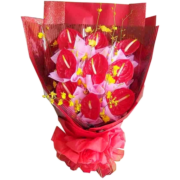 [花语]: 飞扬的红掌热情地伸向四面八方,带来了数不尽的好运气。花名花语仅供参考,您可以在下单时填写卡片留言。