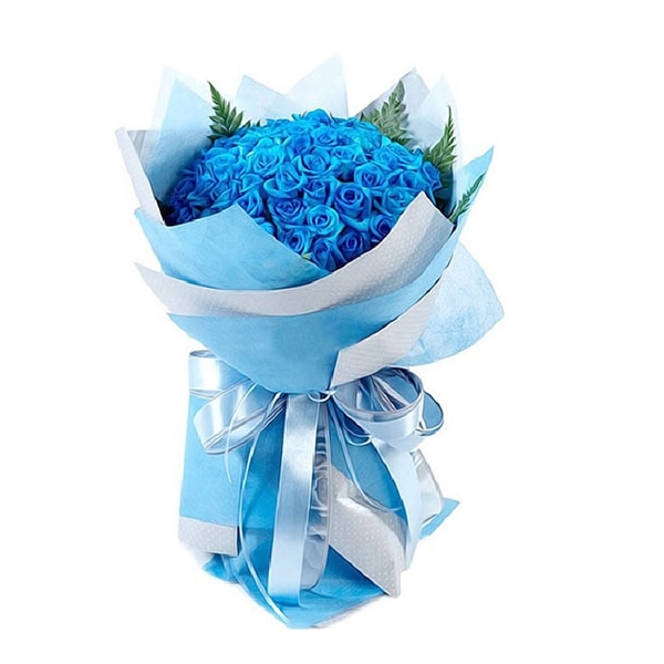 [材料]:99枝蓝玫瑰,绿叶点缀